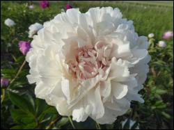 Hauch rosa - in weiß übergehend, vollgefüllt, Seitenknospen, späte Blüte |
