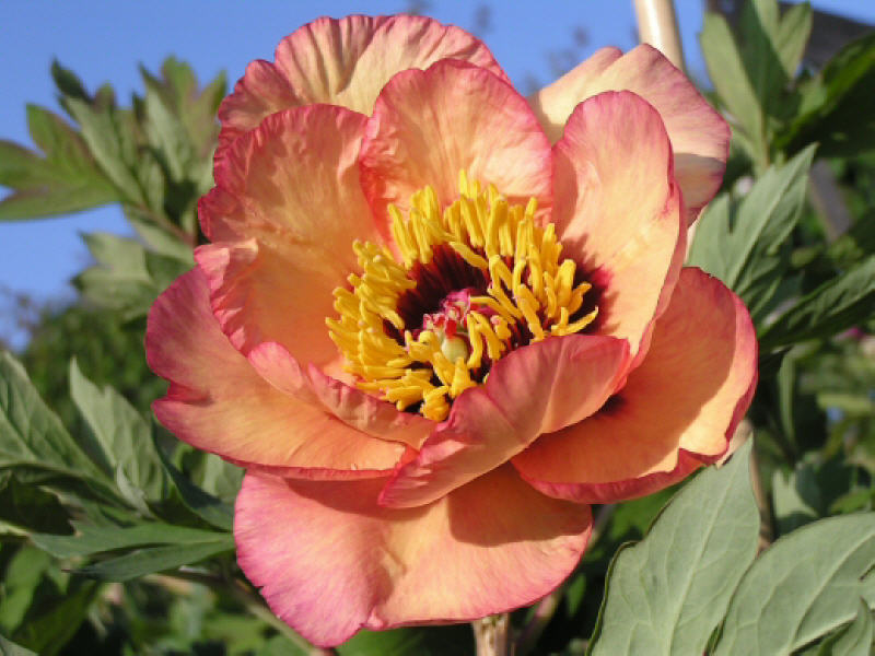 Blütenfarbe: gelbrosa orange, halbgefüllt