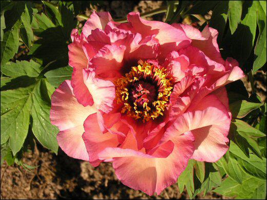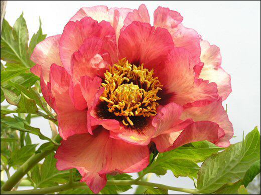Sortenname: Blaze of Glory Blütenfarbe: rosa-gelb-zart goldBlütenform: einfach