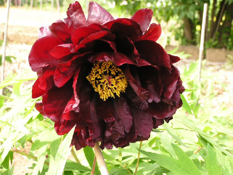 Sortenname: Kronos Blütenfarbe: schwarz rot glänzend Wuchshöhe: 1,2 m Blütengröße: 16 cm Original: USA/Daphnis Bestell.Nr.: Lt.40485 Blütenform: doppelt Wuchsstärke langsamer Wuchs Blütezeit: mitte Besonderheit: Blütenstängel geneigt