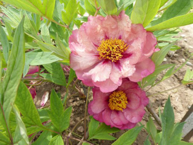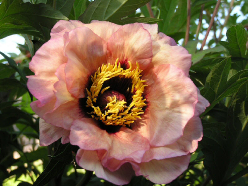 Sortenname: Oread Blütenfarbe: rosacreme Blütenform: einfach - halbgefüllt Wuchsform: starker Wuchs