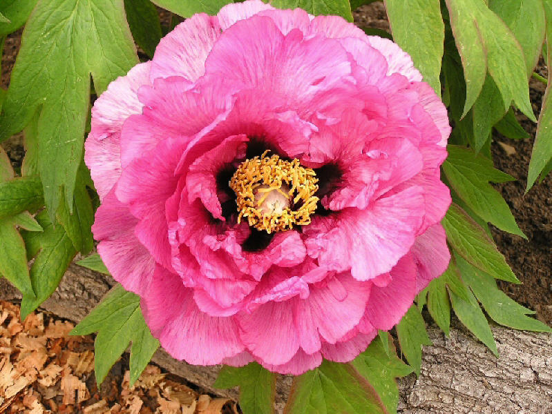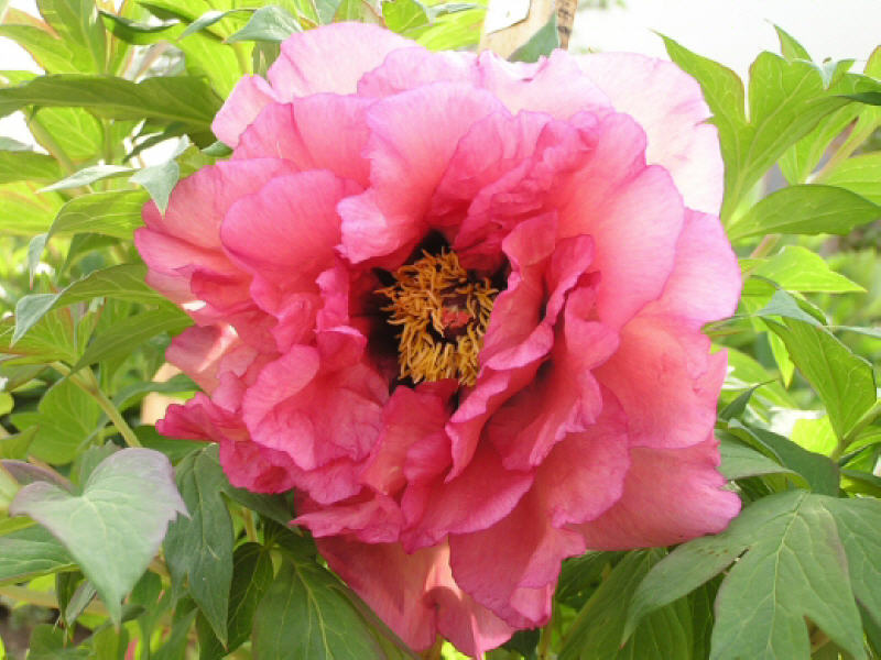 Sortenname: Maria Teressa Blütenfarbe: dunkelrosa Blütenform: halbgefüllt Besonderheit: auffallende Blätter