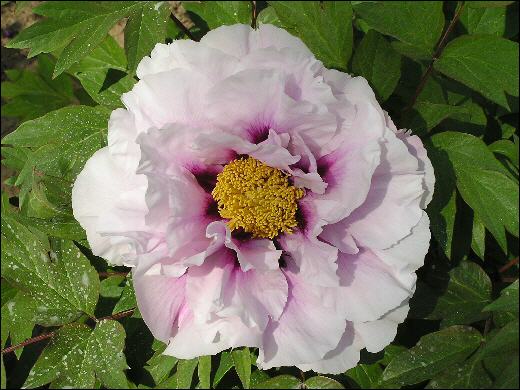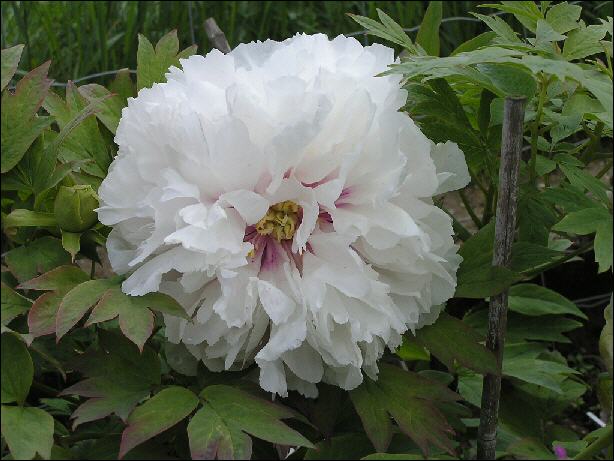 Sortenname: Mikasa Yama Blütenfarbe: weiß rot Wuchshöhe: 1,5 m Blütengröße: 18 cm Original: Japan Bestell.Nr.: Suf.21040 Blütenform: halbgefüllt Wuchsstärke stark Blütezeit: sehr früh - früh Besonderheit: eine der frühesten Sorten